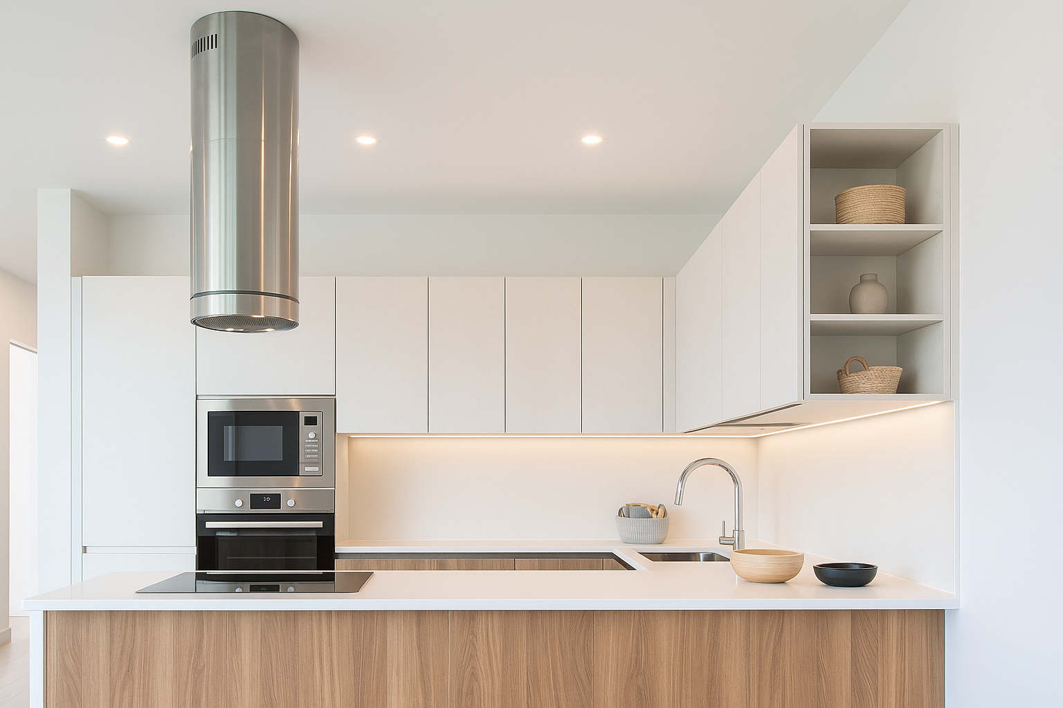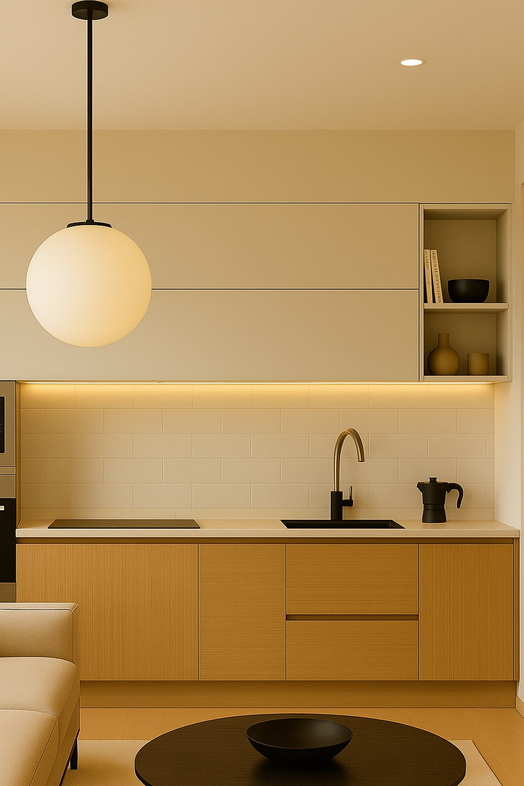 High-standard white laminate cabinetry, warm wood accents, and soft ambient lighting come together to create a kitchen that feels naturally welcoming and effortlessly refined. With clean minimalist lines and premium Italian design, Sephora elevates everyday living into pure design inspiration — a balanced blend of timeless craftsmanship, functional beauty, and relaxed comfort.