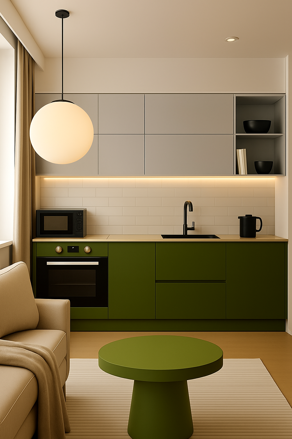 With soft matte finishes, natural oak cabinetry, and refined black accents, Adele blends minimal aesthetics with everyday functionality — a space crafted for beauty, balance, and effortless living.