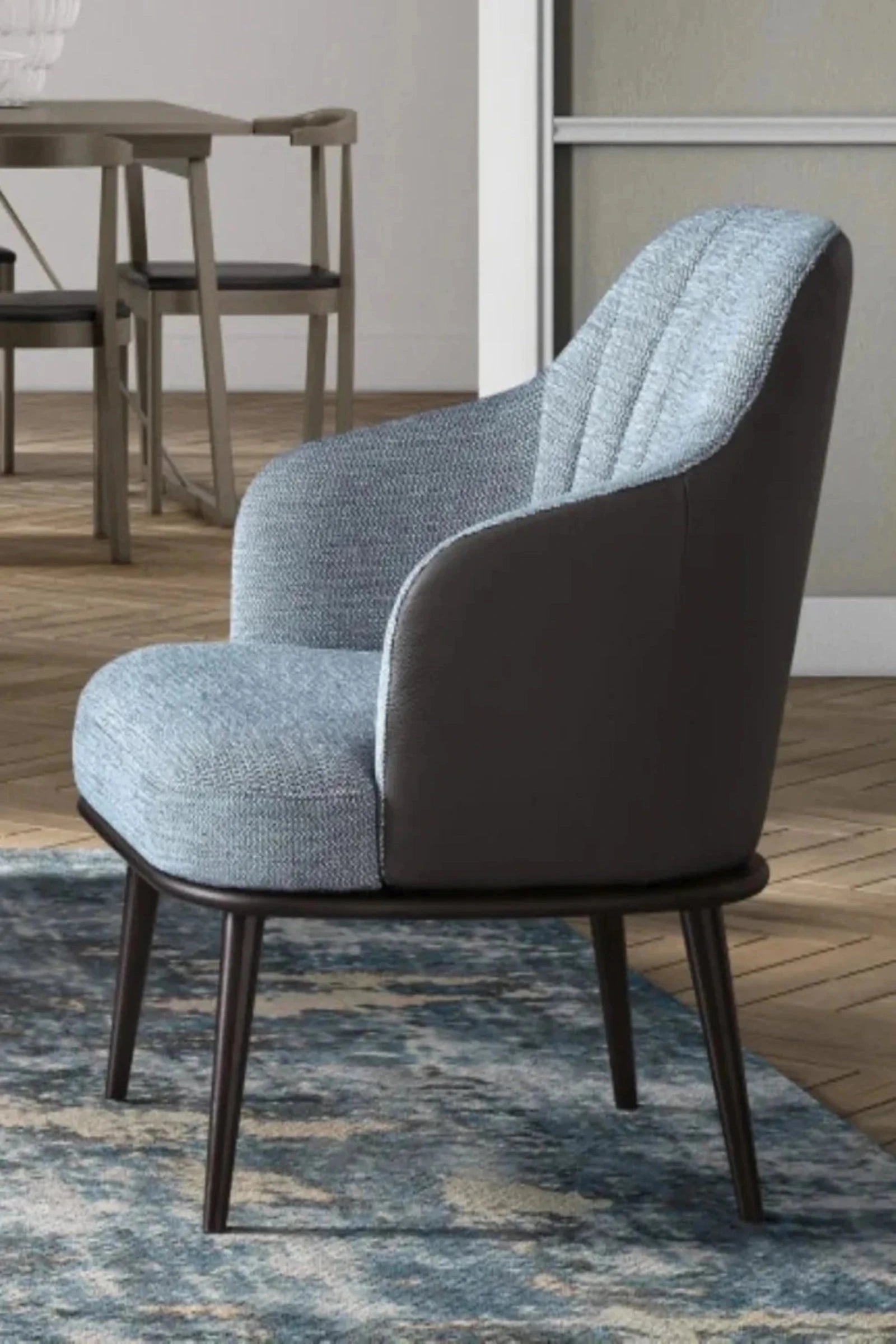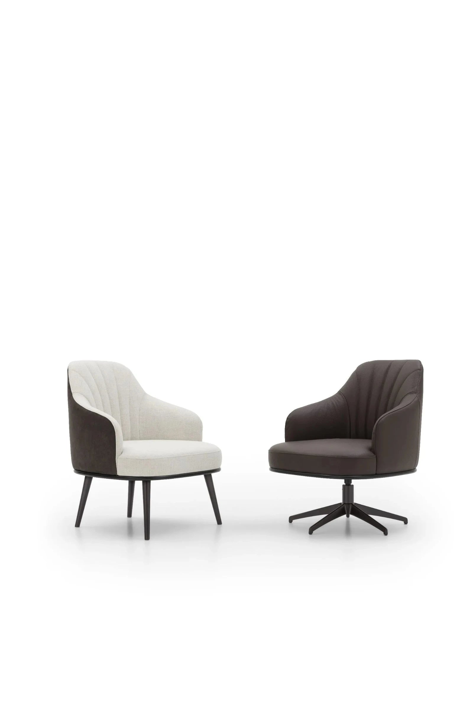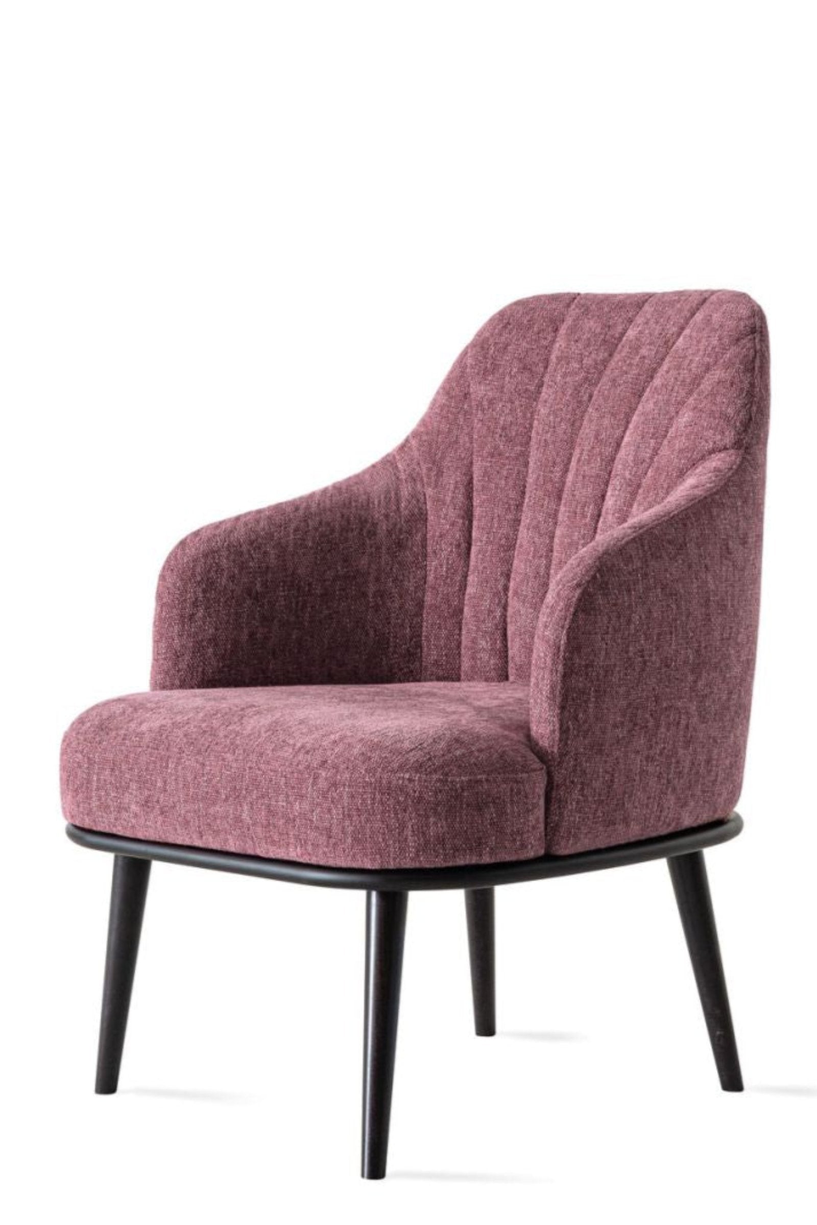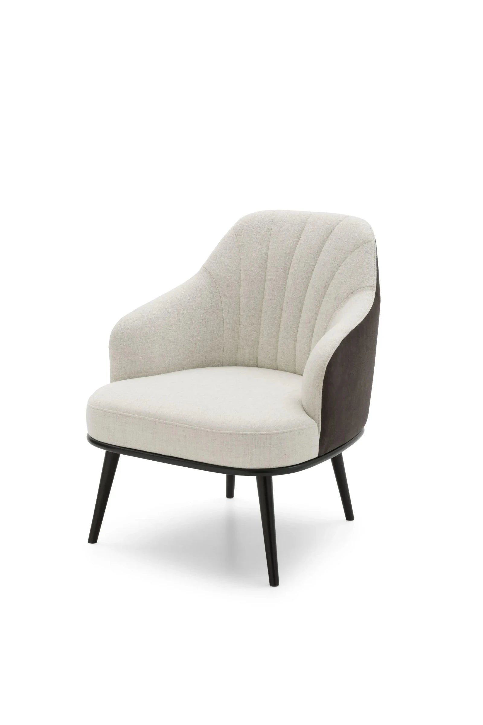 Experience elevated comfort and style with the Aaron armchair. The four high feet lift provide a modern touch, while the vertical stitching on the backrest creates a shell-like design. The oblique armrests offer a sense of protection, ensuring a cozy and relaxing seating experience.