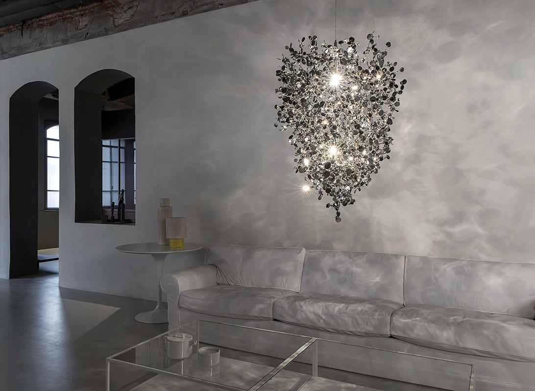 With this light, designer Dodo Arslan creates a shimmering cloud. Argent consists of metal discs that have been meticulously shaped by hand by Terzani craftsmen into clusters.