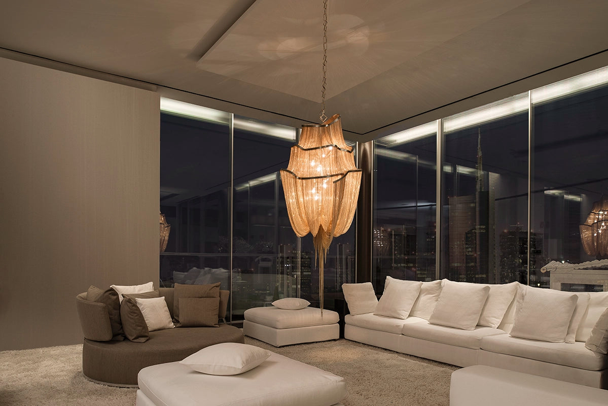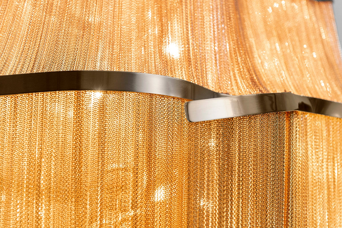 Seemingly alive, Atlantis’ shimmering light creates a vibrant source of energy. Its mesmerizing, organic effect is created by hundreds of illuminated lengths of draped chains.