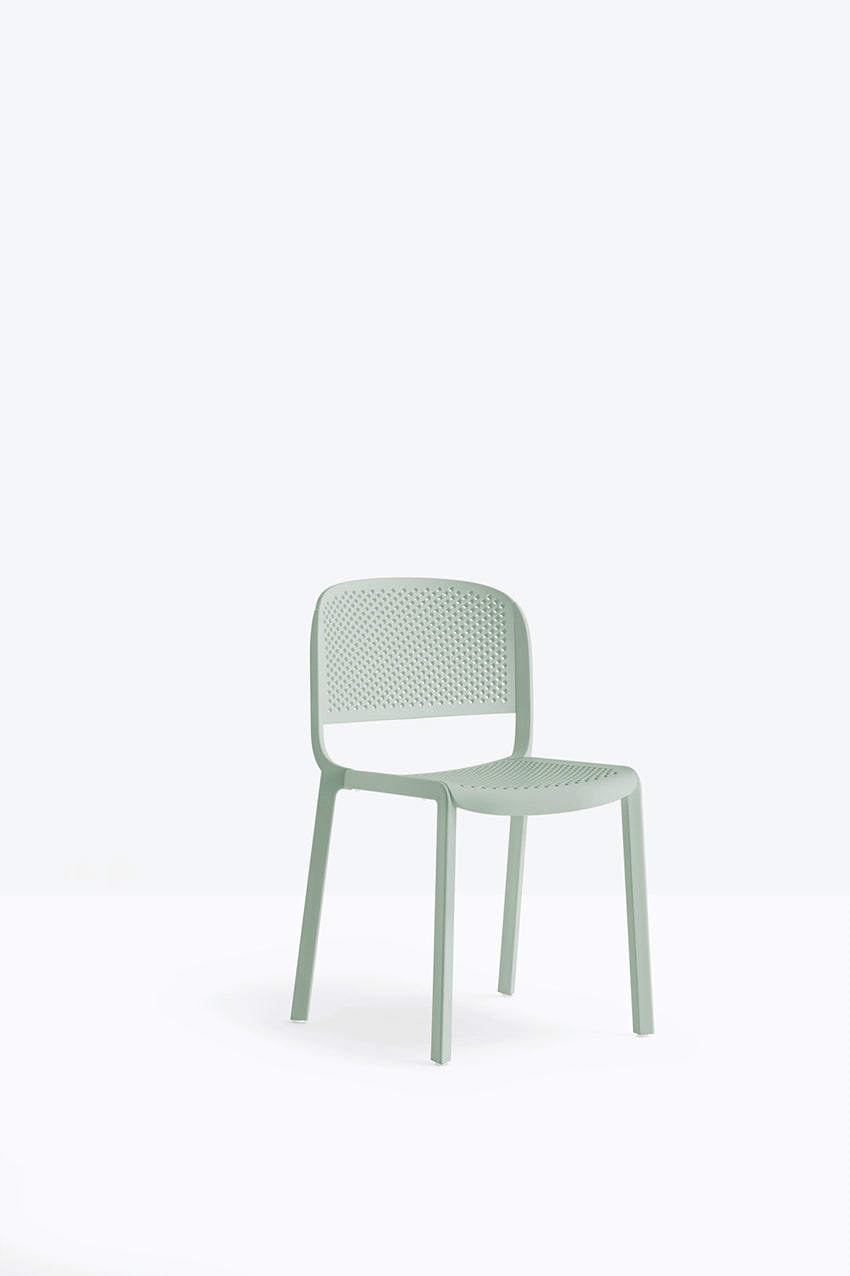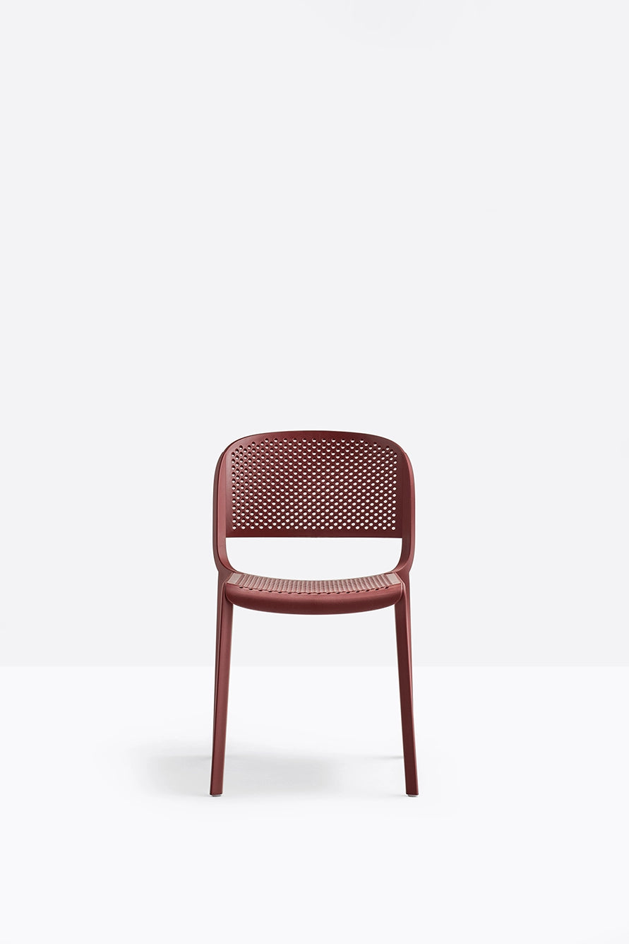 Dome is a collection of chairs that evokes the glorious tradition of bistro chairs with arched silhouettes and the generous shapes of the domes of monuments that embellish many cities in the world. Injection-moulded polypropylene chair charged with glass fibre featuring delicate details that recall the joints of the wood. Stackable.