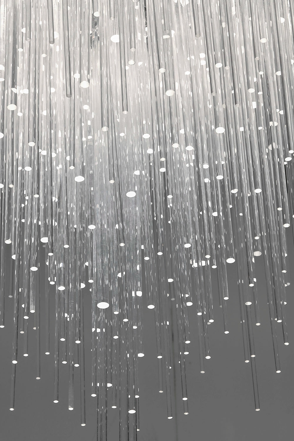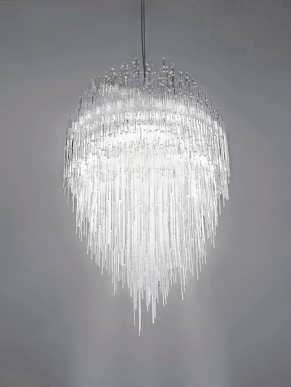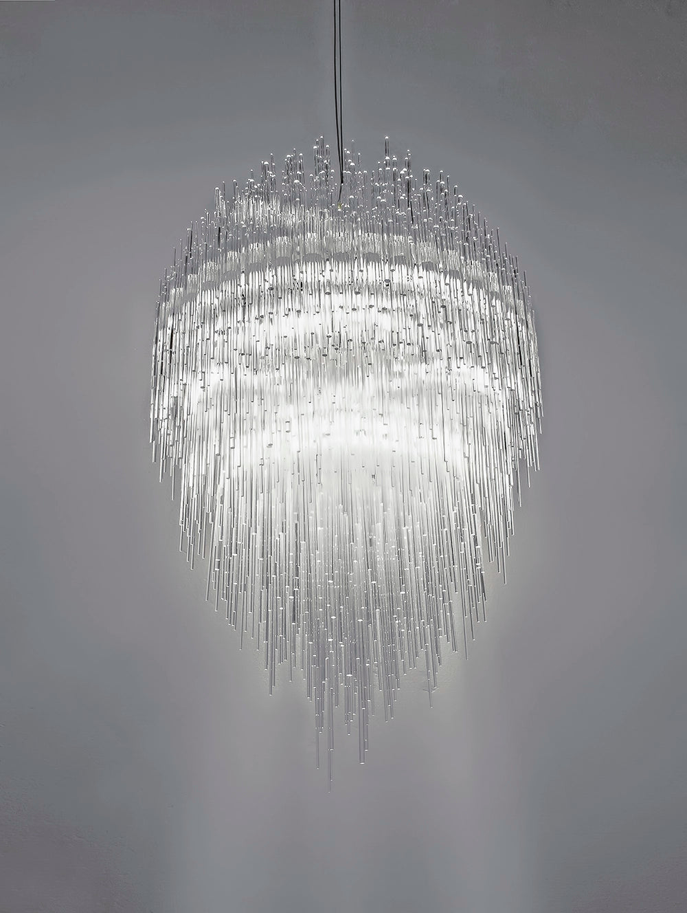 Inspired by the natural beauty of ice crystals, this new suspension light creates a spectacular, luminous piece through the use of over 4086 plexyglass tubes.