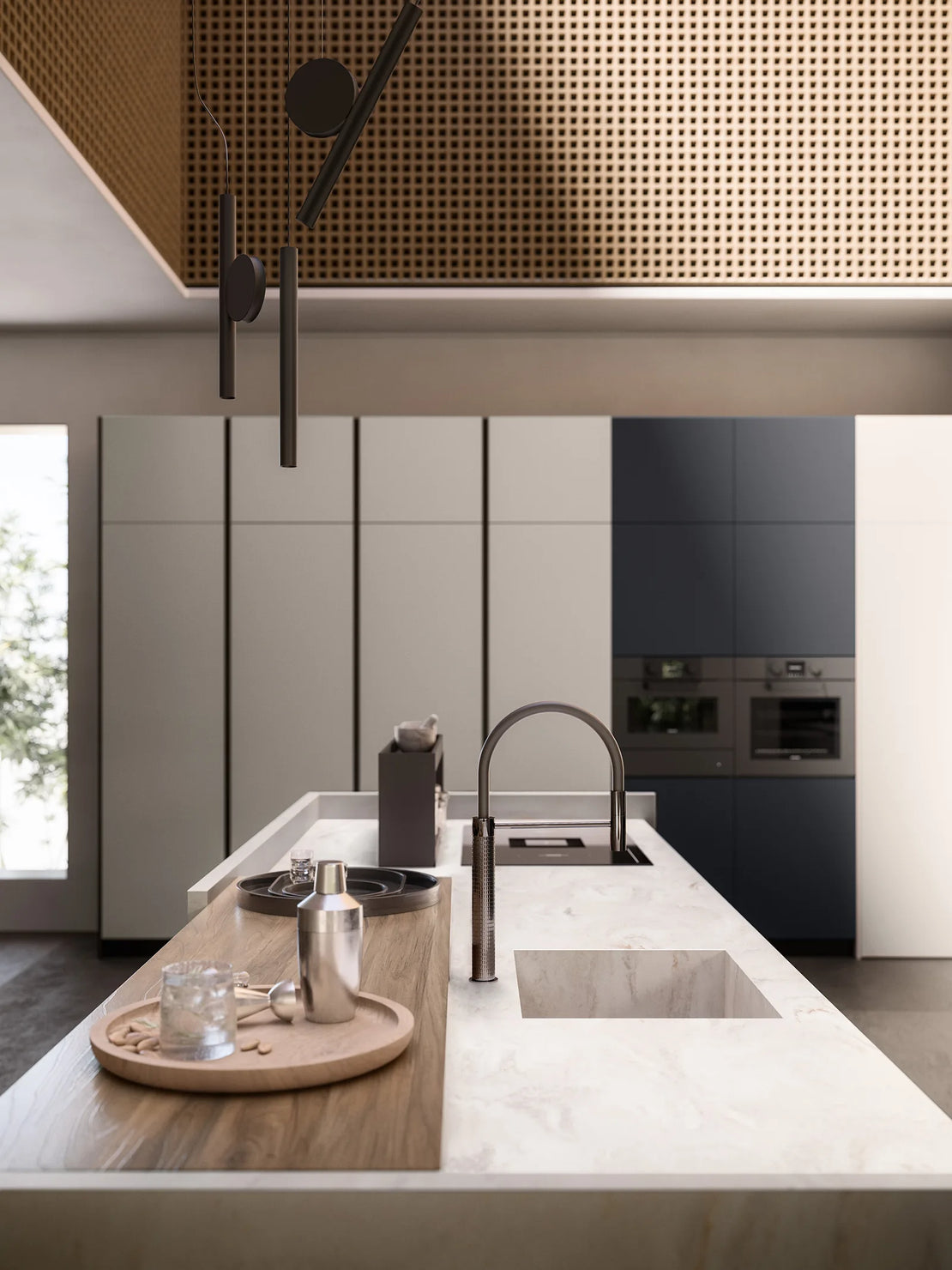 The bold and definitive lines of the Kappa kitchen create modern and refined spaces for culinary exploration and hospitality, embodying the need for increasingly intricate and representative environments suited to new contemporary lifestyles. A careful and limited selection of finishes allows for a complete model that can be enriched with equipped modules, functional solutions, and large containers, offering perfect harmony between space and emotion.