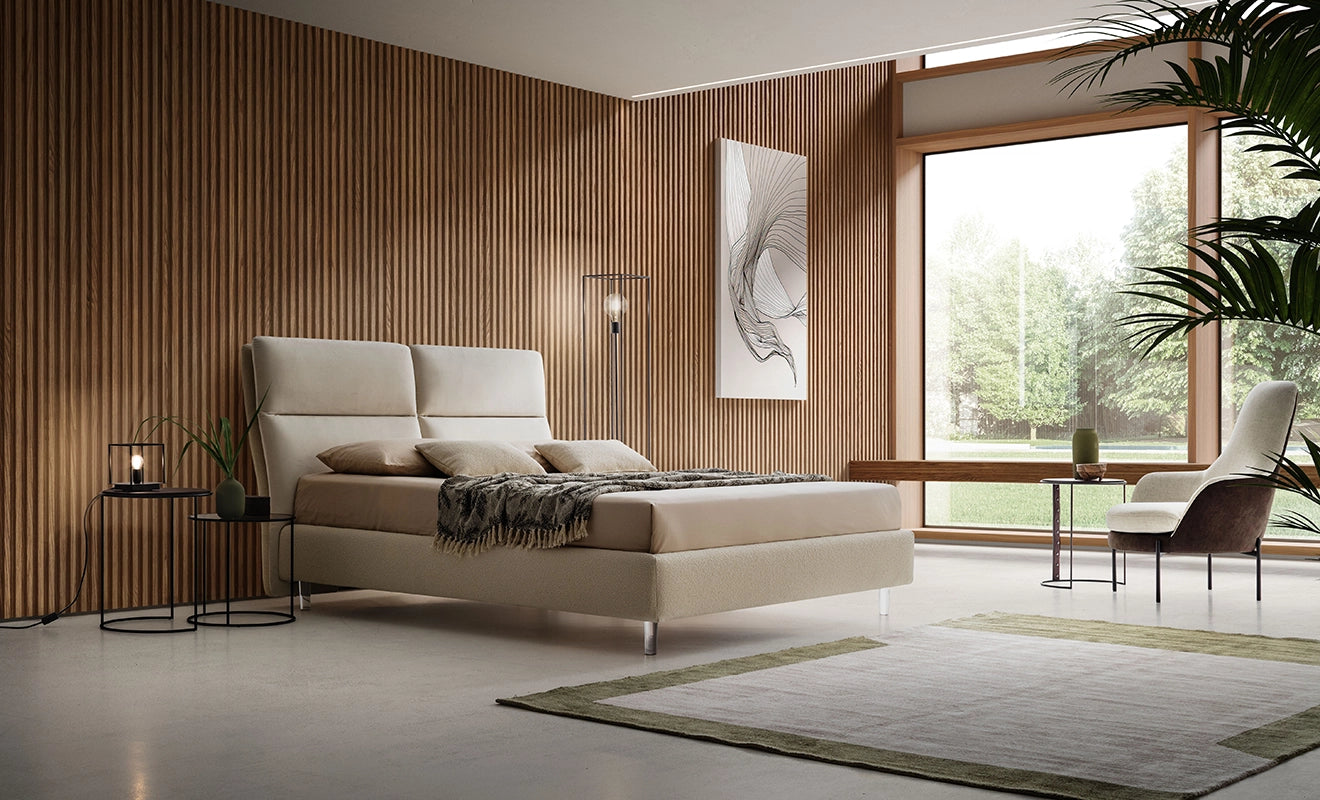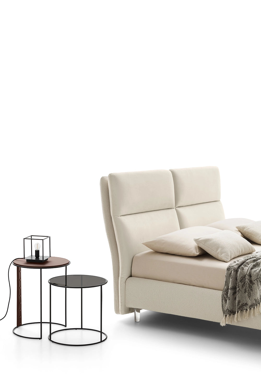 Working on the significant and direct cleanliness of structural lines, the geometry of the King bed is underlined by a slightly curved headboard.