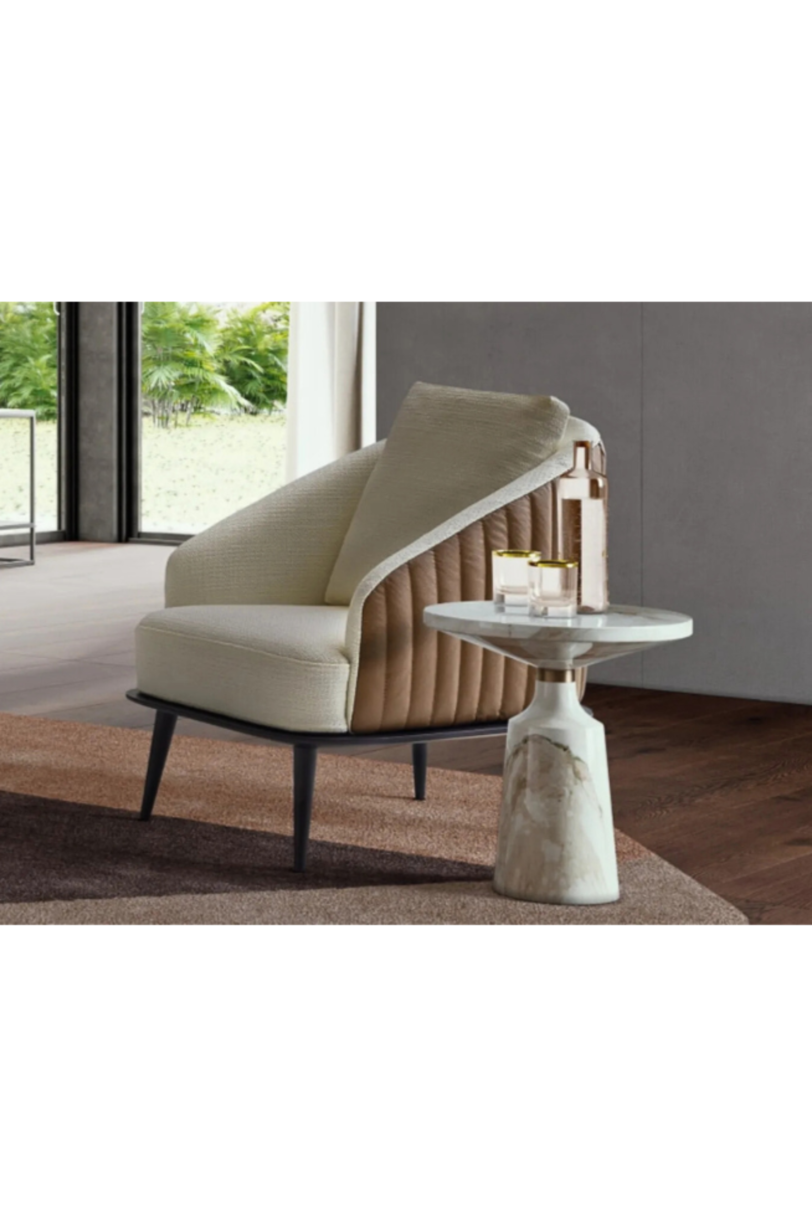Experience the ultimate comfort with Lala's unique design. The backrest and armrests merge seamlessly into a futuristic staircase of vertical stitching, providing a soft and spacious seat. Relax in style with Lala's charming and comfortable embrace.