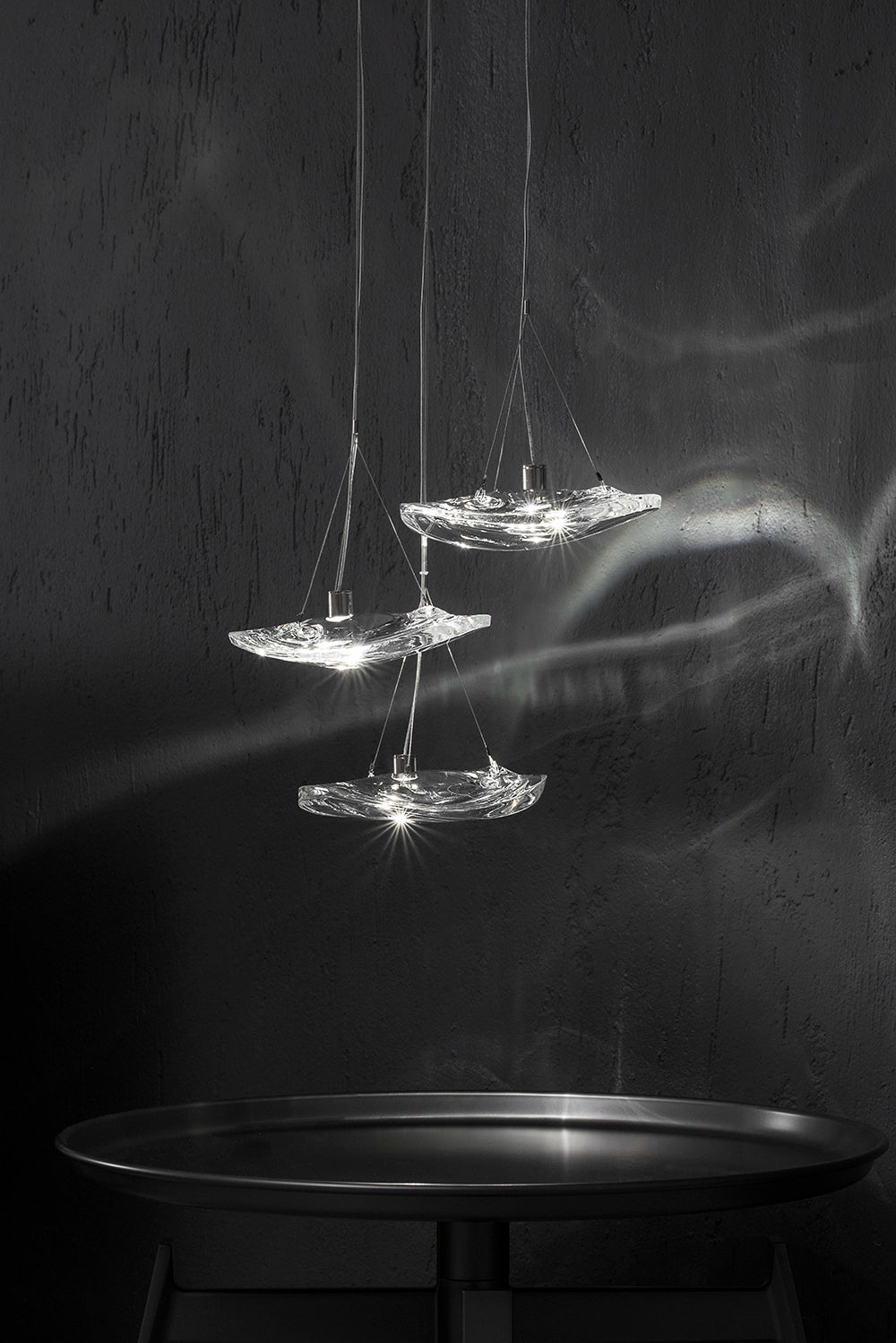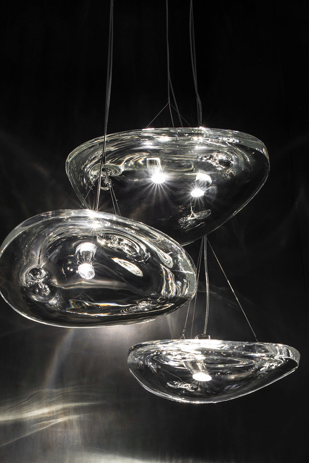 Manta was created featuring sinuous, undulating lines. The results are soft waves of crystal light reminiscent of being underwater.