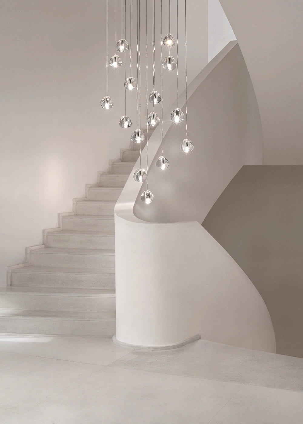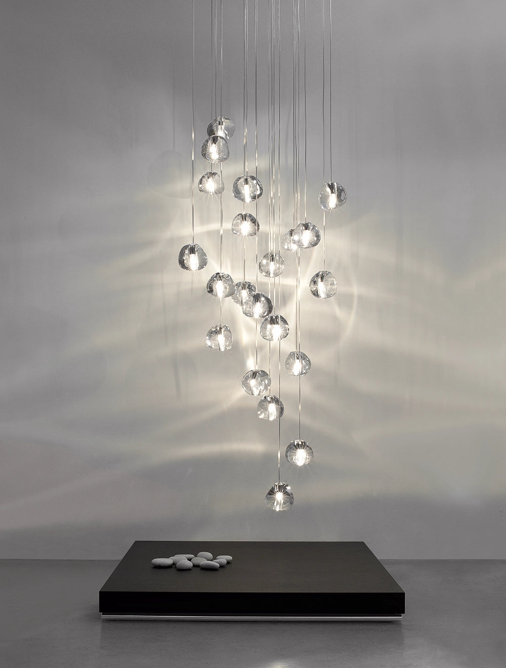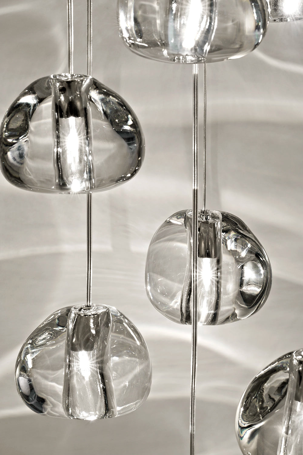 Inspired by the tranquil and mesmerizing light refractions created by water, Mizu is a customizable pendant light from Terzani. Like water droplets, no two Mizu are alike, each crystal shape is unique and made meticulously by hand.
