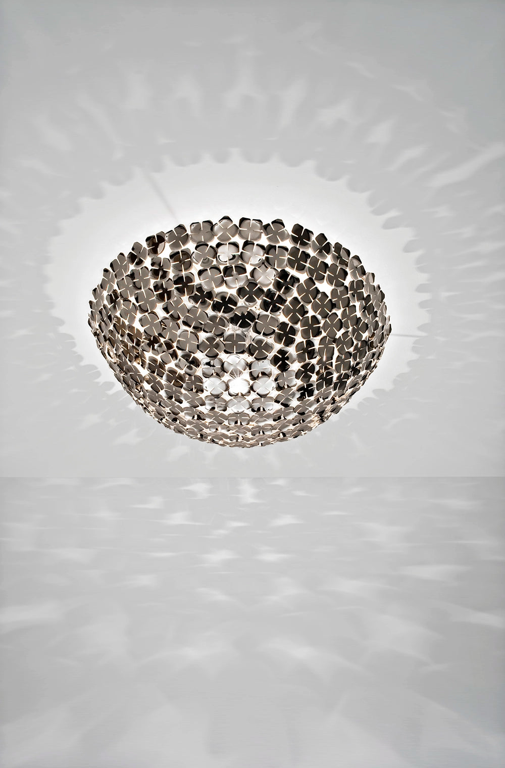 Recalling the natural beauty of a flower, Orten’zia hand-soldered “petals” emanate a unique glow, immersing the entire room in a glimmering light. An organic radiance is created through light and shadow, planting a garden within the room.