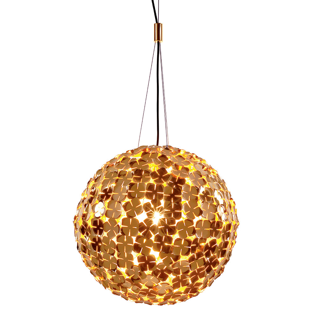 Recalling the natural beauty of a flower, Orten’zia hand-soldered “petals” emanate a unique glow, immersing the entire room in a glimmering light. An organic radiance is created through light and shadow, planting a garden within the room.