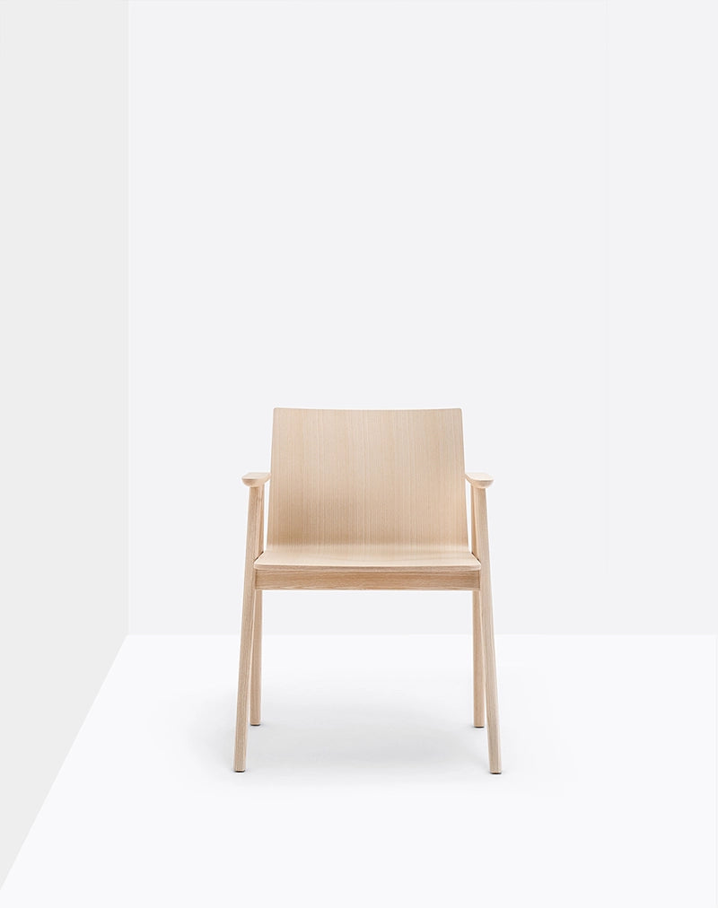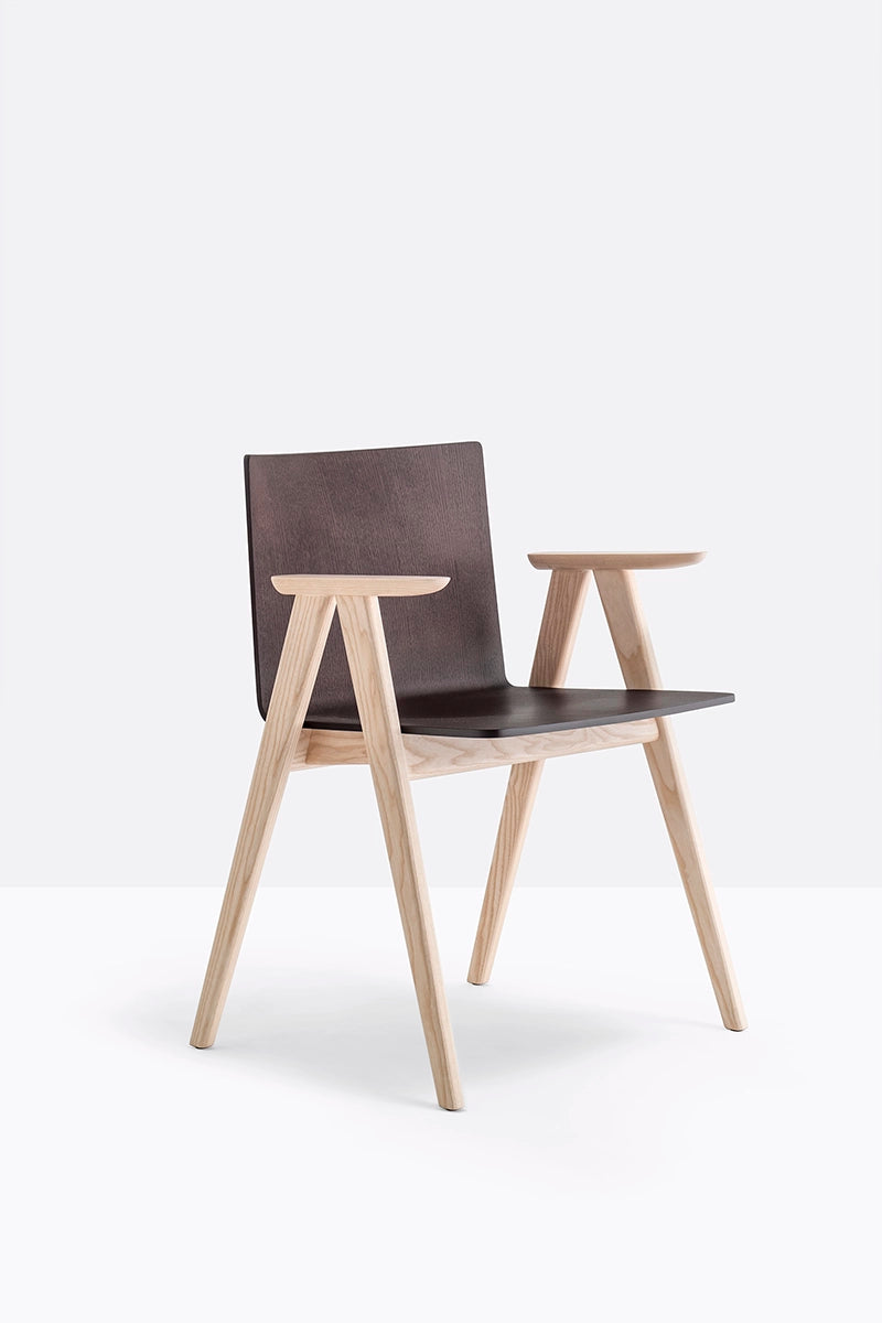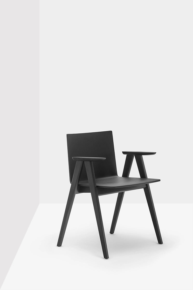 Osaka is a collection of seatings with a strong graphic impact whose construction elements remind the linear features of an ideogram. Armchair with ash veneered plywood shell, solid ash wood frame and armrests.