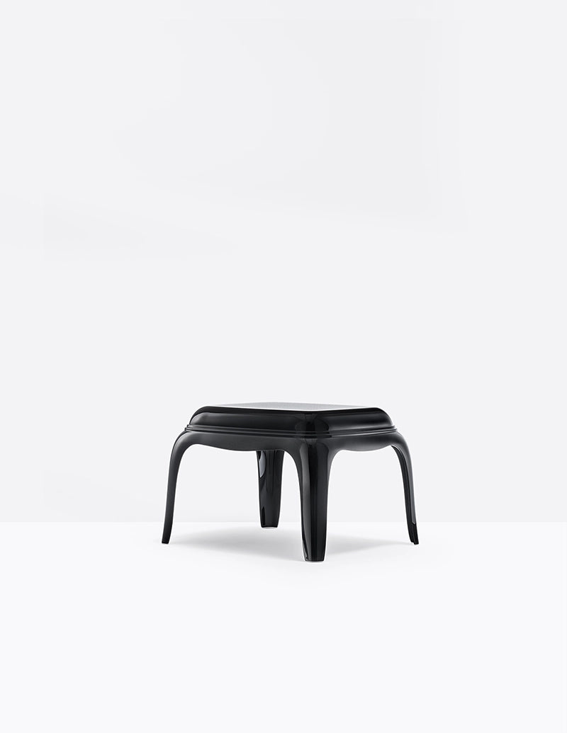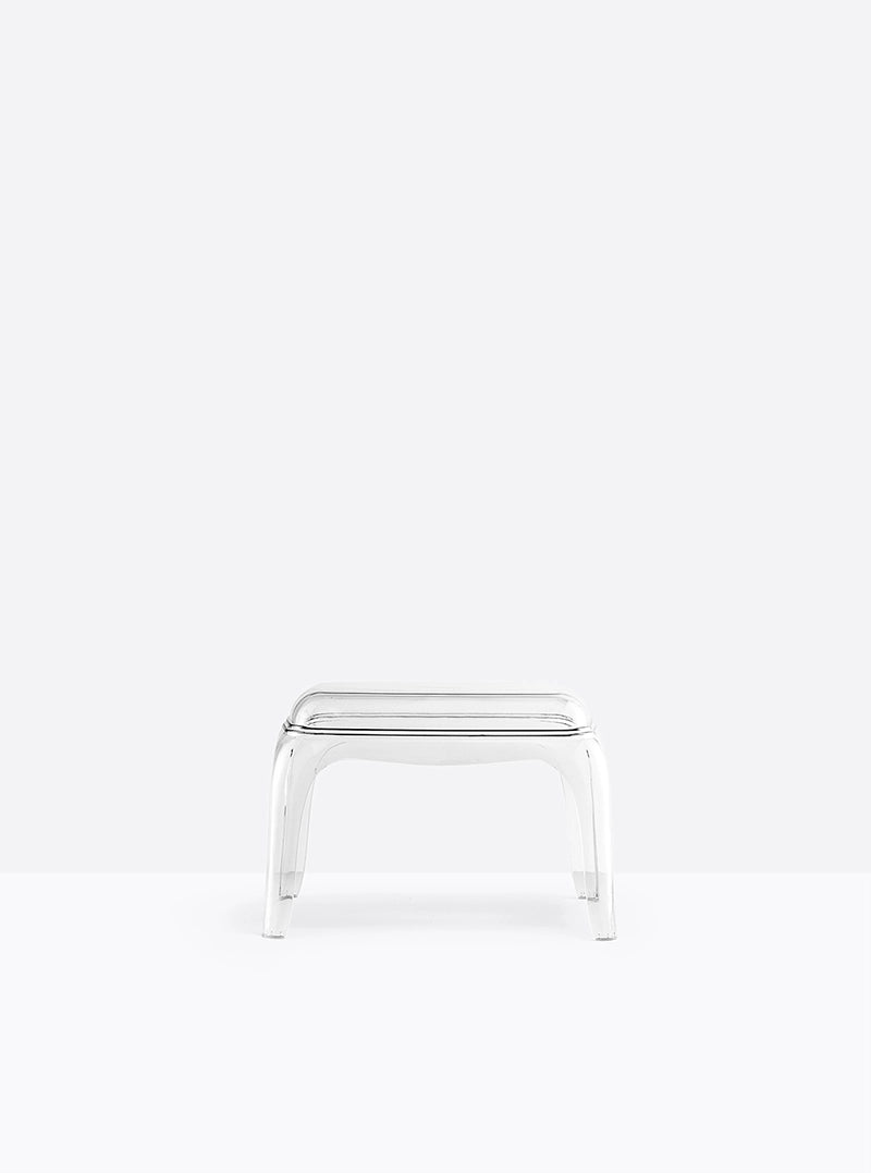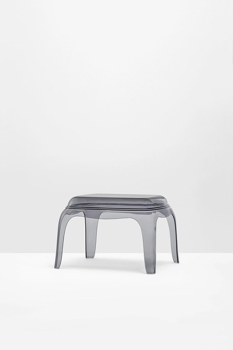 Pasha is a perfect blend of tradition and innovation. Injection moulding polycarbonate pouf suitable for outdoor contexts too. Available as an optional a practical tray that transforms it into a coffee table.