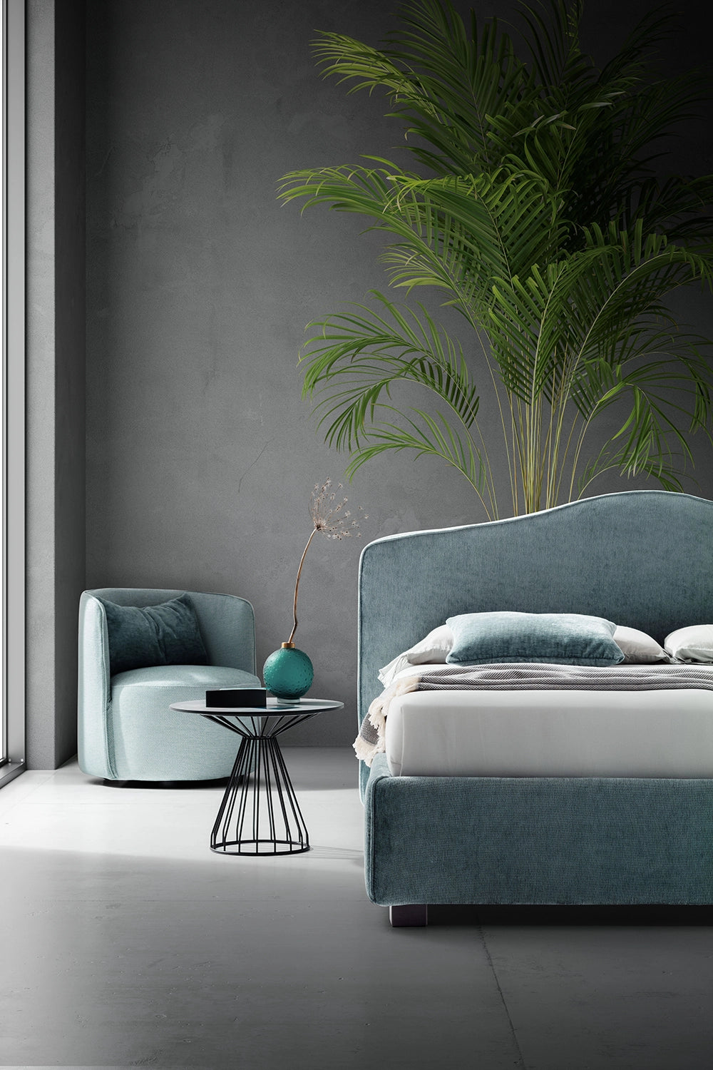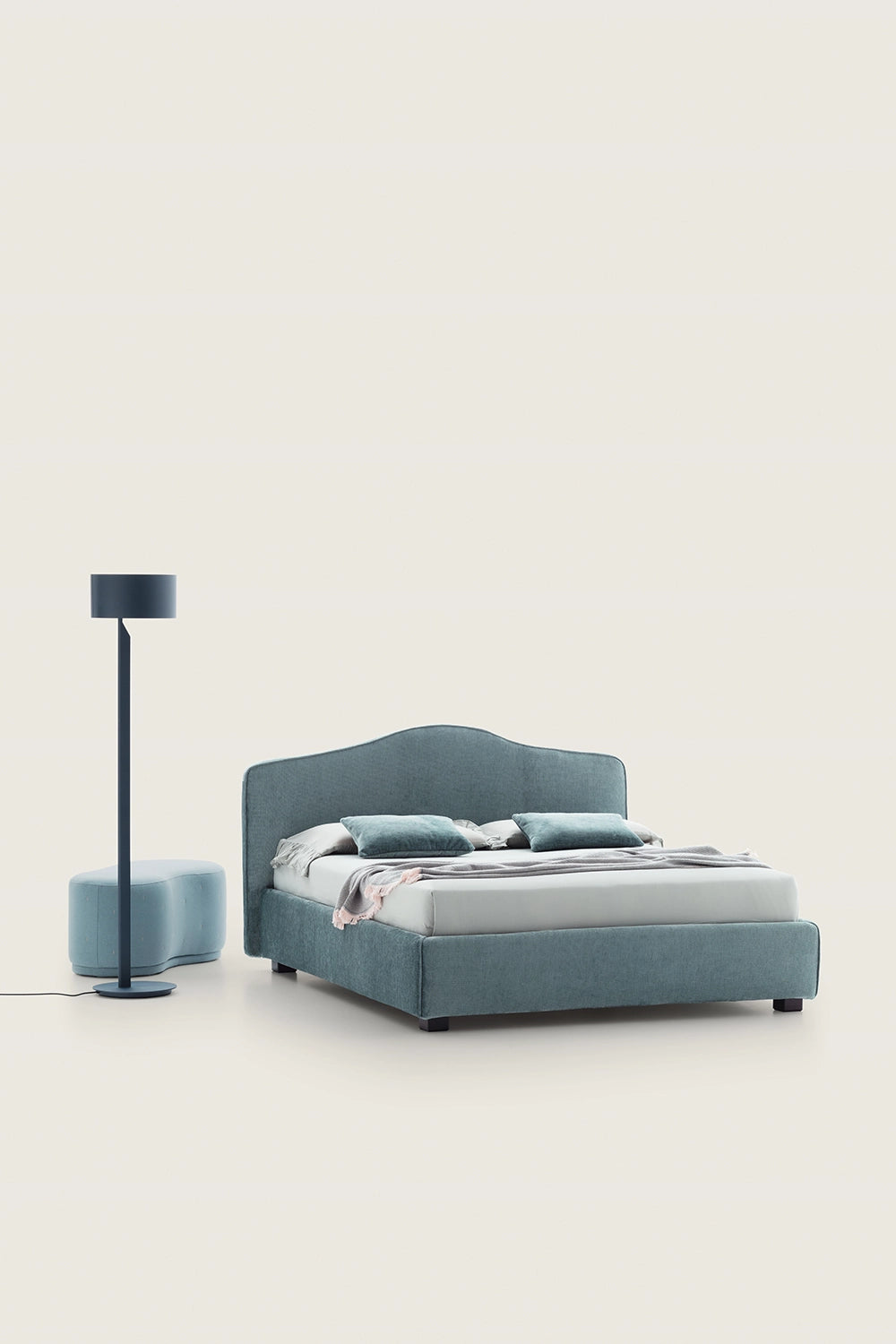 Upholstered bed-box, respectful of the traditional canons of elegance and structural harmony, Lara faithfully traces the linearity of clean shapes, to break into a pleasant and unexpected curve at the apex of the headboard.