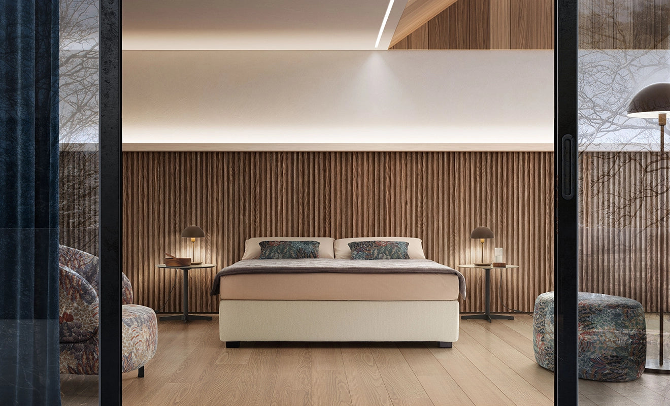 Sommier bed by Le Comfort in fabric: it can be placed in any kind of sleeping area, organizing the spaces mixing charm and class. The modern sommier double beds of the Le Comfort brand will ensure total relaxation every night, complete comfort, welcome and warmth.