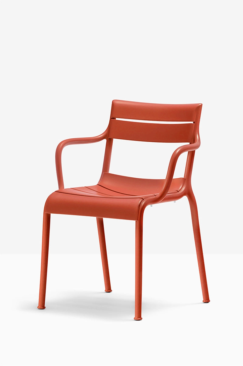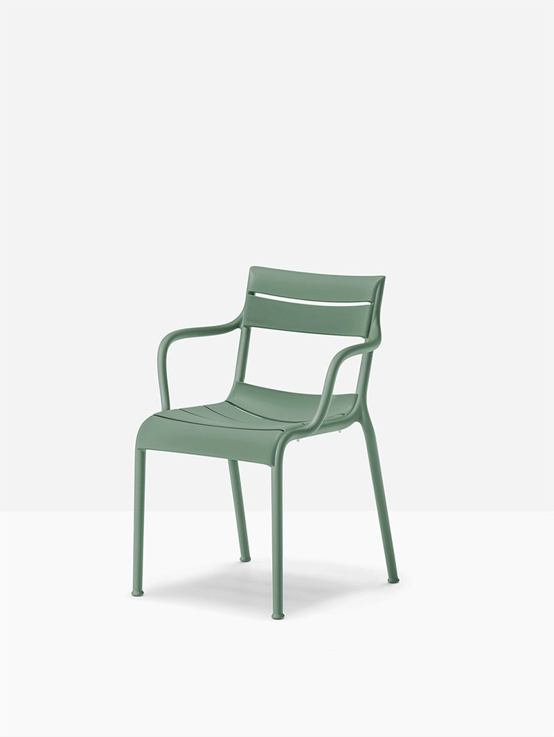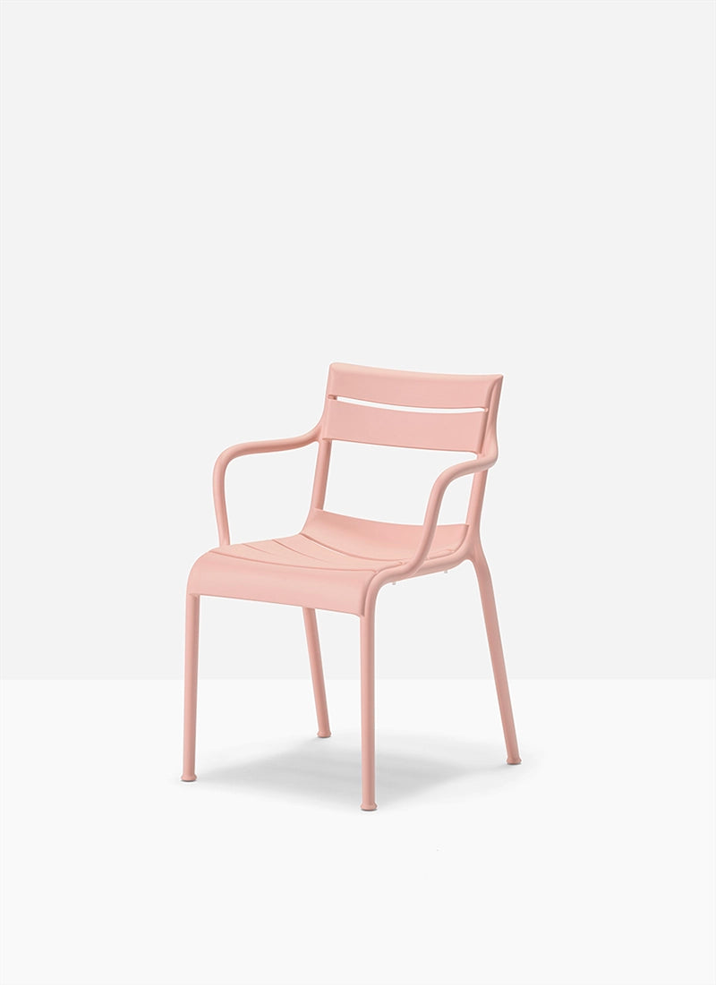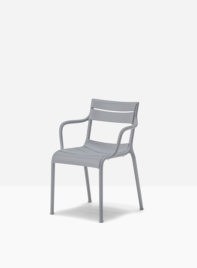 Souvenir was born from the desire to reinterpret the iconic shapes of the chairs used in Parisian gardens in the 18th century. A monoblock polypropylene armchair designed specifically for outdoor use, it stands out for its harmonious shape, integrating all its constituent elements in an organic and natural way.