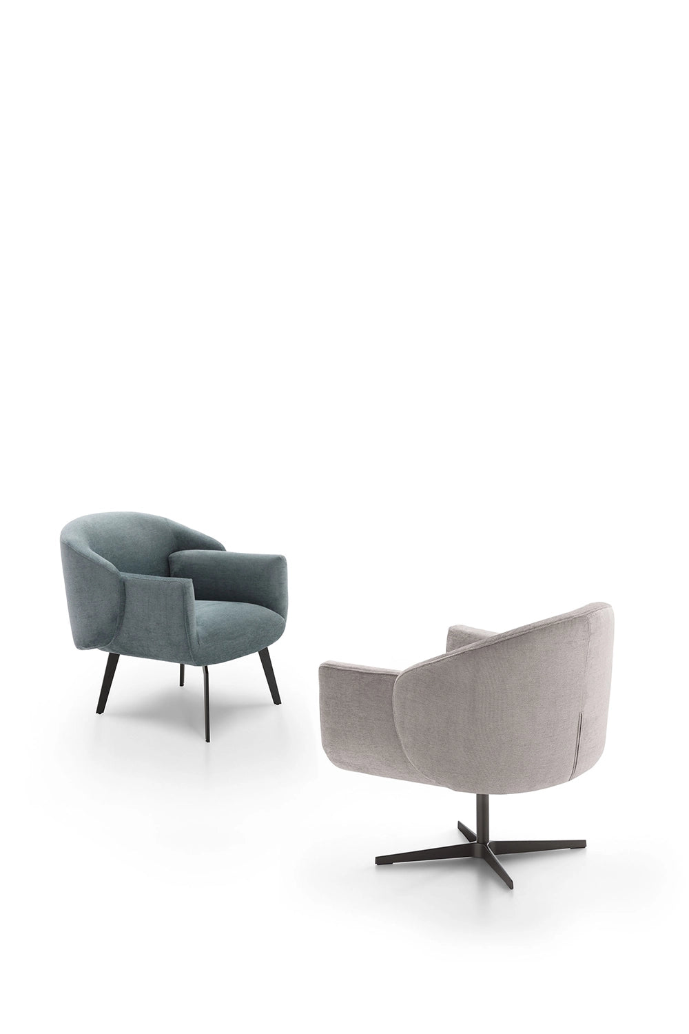 Wrap swivel armchair by Le Comfort : all the brand's products are a guarantee of durability over the years, quality of finishes and coverings, decisive shapes and a unique style.